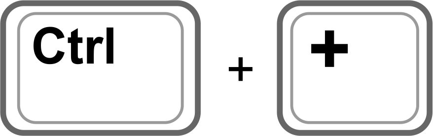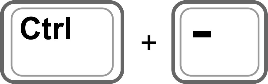 Pressione a tecla CONTROL [Ctrl] simultaneamente com uma das teclas + (MAIS), - (MENOS) e 0 (ZERO).