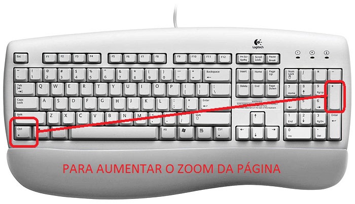 PARA AUMENTAR O ZOOM DA PÁGINA